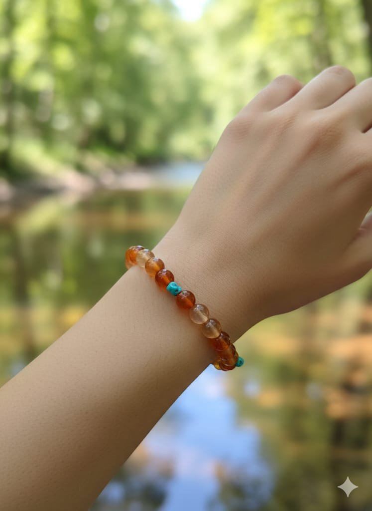 Akik ve kırık turkuaz taşlı bileklik (8mm. kesimli akik)