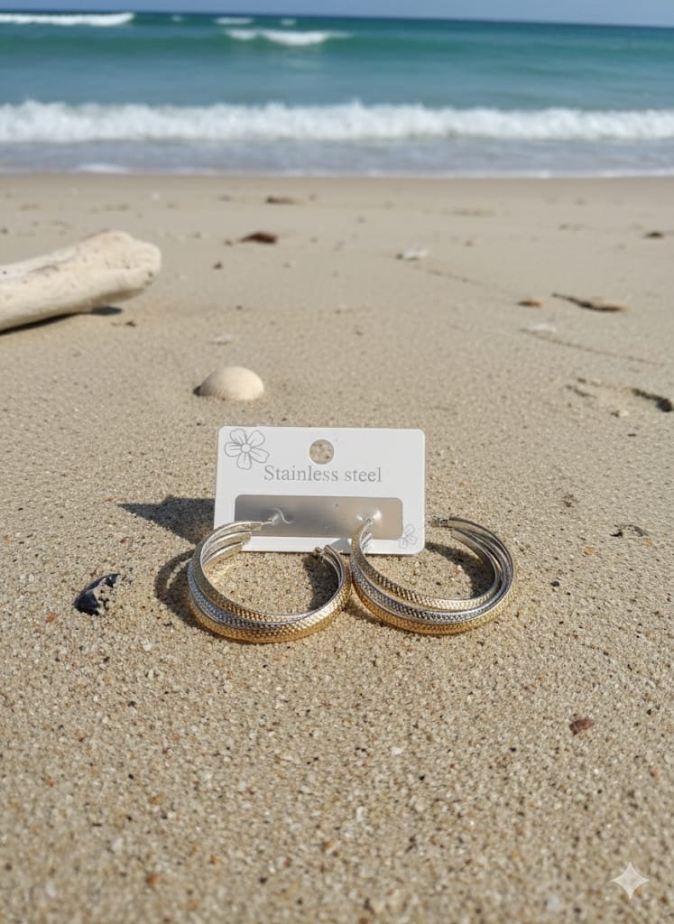%100 çelik küpe. Gold ve silver beraber.